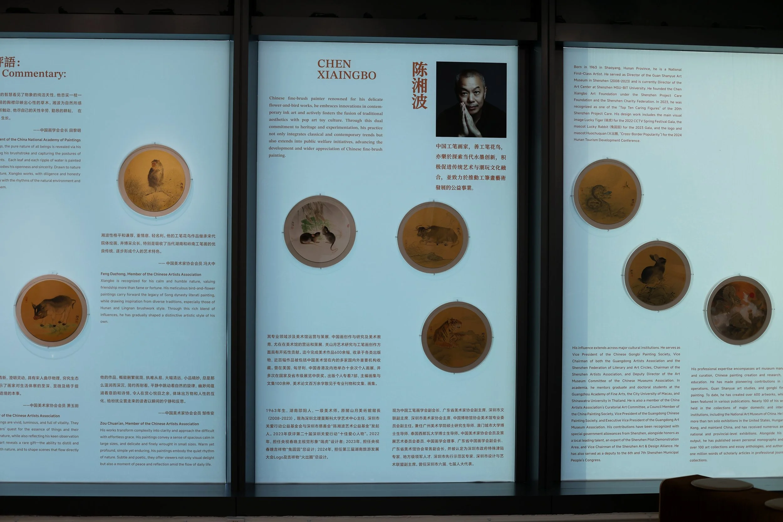 Born in 1963 in Shaoyang, Hunan Province, he holds the title of National First-Class Artist. He formerly served as Director of the Guan Shanyue Art Museum (2008–2023) and is currently the Art Center Director at Shenzhen MSU-BIT University. He is also the founder of the "Chen Xiangbo Art Foundation" under the Shenzhen Project Care Foundation and the Shenzhen Charity Federation. In 2023, he was honored as one of the "Top Ten Caring Figures" of the 20th Shenzhen Project Care.